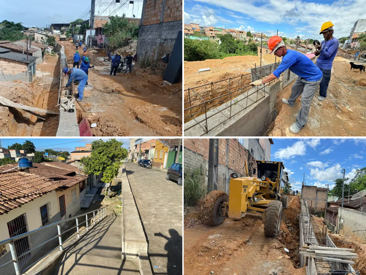 as obras na rua Lua Nova, bairro Moisés Reis. Nesta quarta-feira (19)